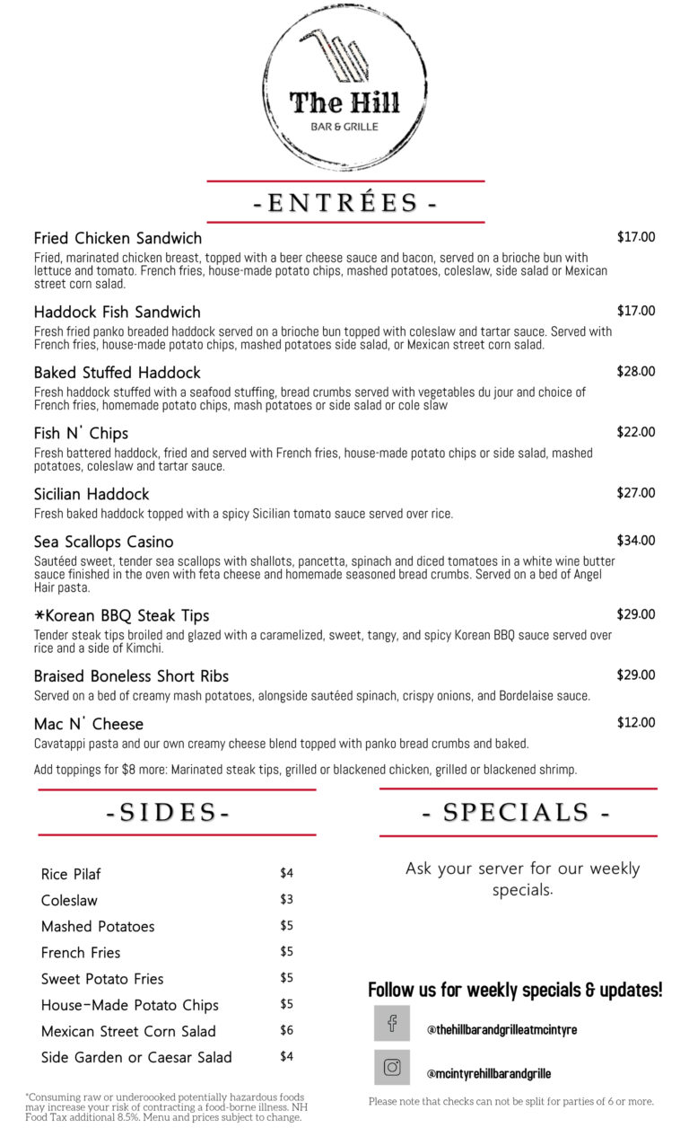Email thehillbarandgrille@mcintyreskiarea.com