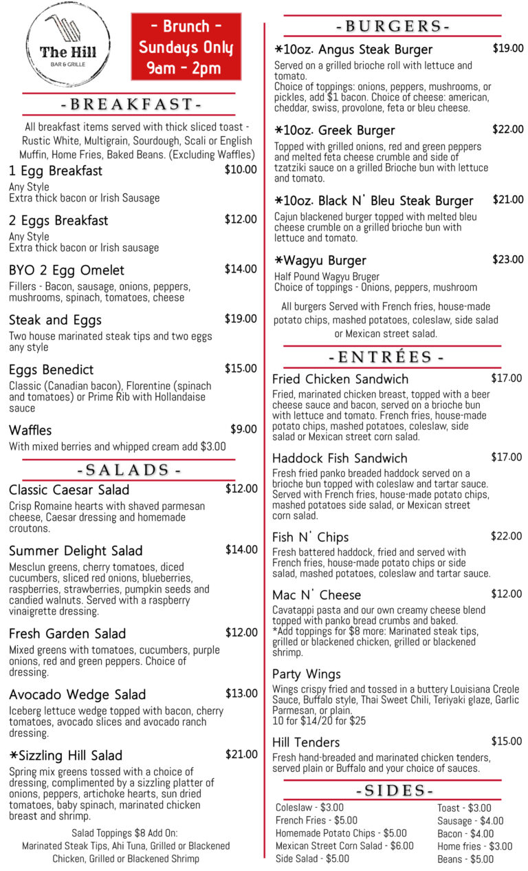 The Hill Bar & Grille Hours